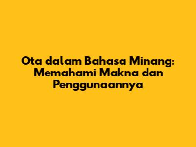 Ota Dalam Bahasa Minang: Pengertian, Contoh, Dan Penggunaannya