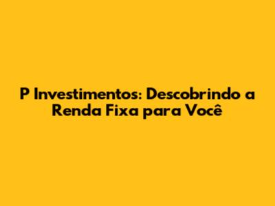 Boas-vindas ao Mundo da Renda Fixa com P Investimentos!