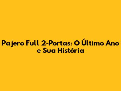 Pajero Full 2-Portas: O Último Ano E Sua História