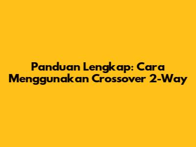 Panduan Lengkap: Cara Menggunakan Crossover 2-Way
