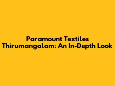 Paramount Textiles Thirumangalam: An In-Depth Look