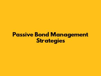 Passive Bond Management Strategies