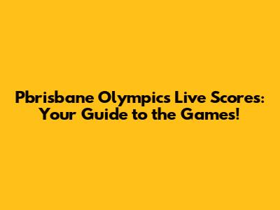 Pbrisbane Olympics Live Scores: Your Guide To The Games!