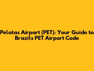 Are you trying to figure out the airport code for Pelotas Airport in Brazil? You've come to the right place! In this article, we'll dive into everything you need to know about Pelotas Airport (PET), from its location and facilities to why knowing the airport code is so important for travelers. Let's get started and make your travel planning a breeze!