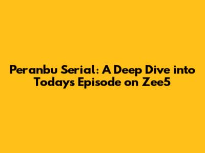 Hey guys! Are you ready to dive into the world of Peranbu? If you are a fan of Peranbu serial and are eagerly awaiting today's episode, you're in the right place! We will be taking a closer look at the latest episode of Peranbu, which is available on Zee5. Get ready for a breakdown of the plot, characters, and any exciting twists and turns that will have you hooked. We will give you a glimpse into the emotional journey of the characters, the significant plot points, and the overall impact of the episode. This blog post is your one-stop guide to everything related to the latest episode of Peranbu, ensuring you don't miss a single detail! This guide offers insights, recaps, and analysis, making sure you are well-prepared for your viewing experience. So, grab your snacks, settle in, and let's explore the captivating world of Peranbu on Zee5 together!