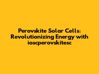 Perovskite Solar Cells: Revolutionizing Energy With Ioscperovskitesc
