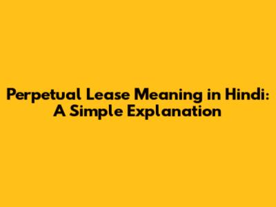 Perpetual Lease Meaning In Hindi: A Simple Explanation