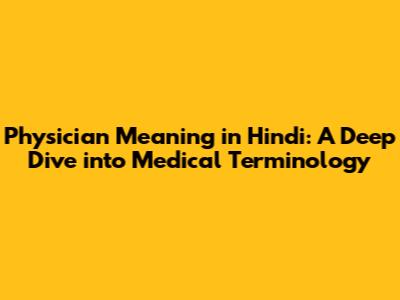 Physician Meaning In Hindi: A Comprehensive Medical Guide
