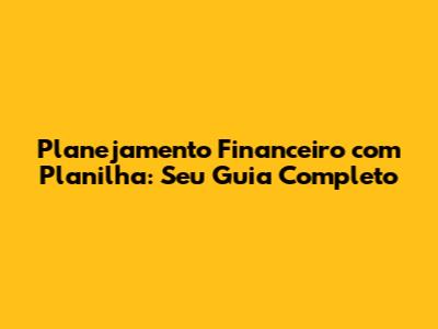 Planejamento Financeiro Com Planilha: Seu Guia Completo