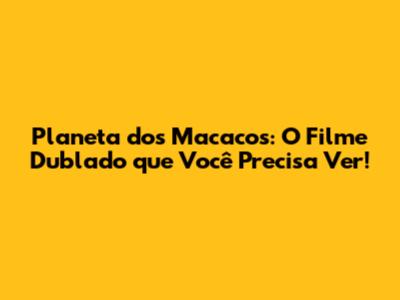 Planeta Dos Macacos: O Filme Dublado Que Você Precisa Ver!