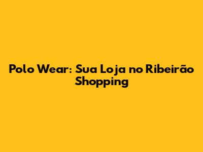 Polo Wear: Sua Loja No Ribeirão Shopping
