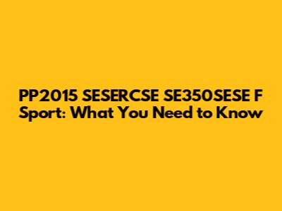 PP2015 SESERCSE SE350SESE F Sport: What You Need To Know