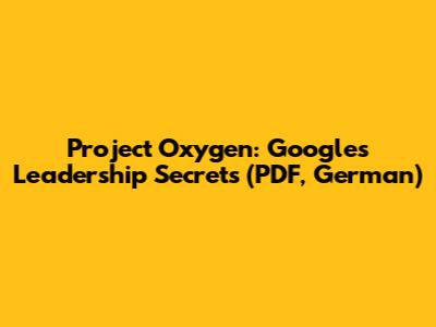 - Search Google (in German!): Use keywords like "Project Oxygen Google PDF Deutsch" or "Google Führungskräfteentwicklung Project Oxygen PDF" to search for German articles, translations, or summaries. You might stumble upon a translated version or a detailed explanation in German.