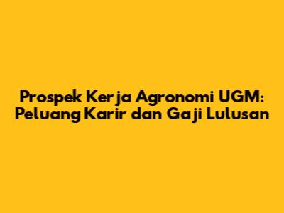 Prospek Kerja Agronomi UGM: Peluang Karir Dan Gaji Lulusan