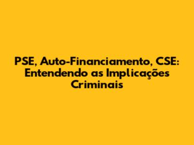 PSE, Auto-Financiamento, CSE: Entendendo As Implicações Criminais