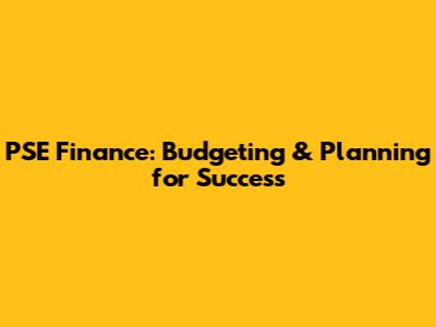 PSE Finance: Budgeting & Planning For Success
