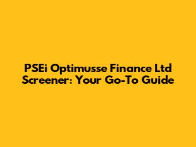 PSEi Optimusse Finance Ltd Screener: Your Go-To Guide
