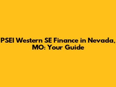 PSEI Western SE Finance In Nevada, MO: Your Guide