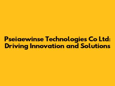 Pseiaewinse Technologies: Innovations & Solutions