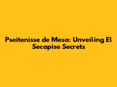 Pseitenisse De Mesa: Unveiling El Secapise Secrets