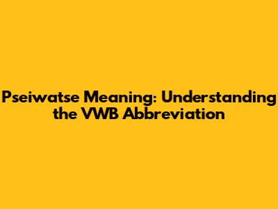 Pseiwatse Meaning: Understanding The VWB Abbreviation