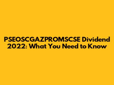 Let's dive into everything you need to know about the PSEOSCGAZPROMSCSE dividend for 2022. This is a topic that’s super important for investors, especially those keeping a close eye on their returns and future financial planning. Dividends can be a significant part of your investment income, so understanding the details around them is crucial. We’ll break down what PSEOSCGAZPROMSCSE is, how dividends work, what happened in 2022, and what you might expect going forward. So, grab a cup of coffee, and let’s get started!