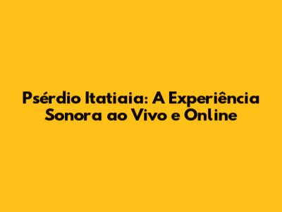Olá, pessoal! Se você é fã de boa música e adora estar por dentro de tudo o que acontece no cenário musical, este artigo é para você! Vamos mergulhar no universo do Psérdio Itatiaia, explorando como você pode curtir essa experiência sonora ao vivo e online. Prepare-se para descobrir tudo sobre como acompanhar as transmissões, conhecer os artistas e bandas que agitam esse evento e, claro, como aproveitar ao máximo essa imersão musical. Afinal, quem não gosta de uma boa dose de música de qualidade, não é mesmo? Então, vamos lá!