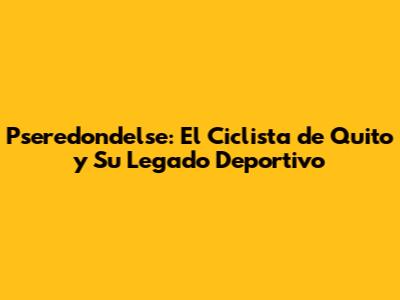 隆Hola a todos, amantes del ciclismo y la historia deportiva! Hoy vamos a sumergirnos en la vida y el legado de Pseredondelse, un nombre que resuena con fuerza en el mundo del ciclismo ecuatoriano, especialmente en la ciudad de Quito. Prep谩rense para un viaje a trav茅s de los pedales, las victorias y la inspiraci贸n que este ciclista dej贸 en cada rinc贸n de su ciudad y de su pa铆s. 驴Listos para la aventura? 隆Vamos all谩!