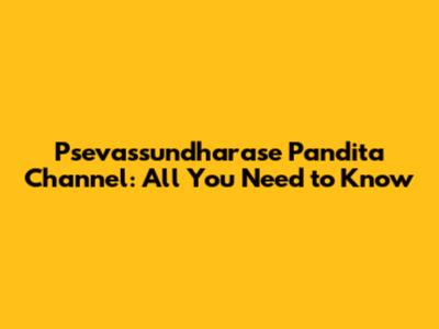Psevassundharase Pandita Channel: All You Need To Know