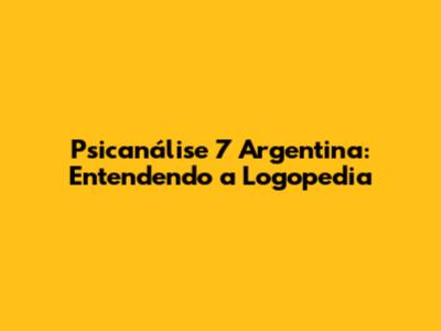 Psicanálise 7 Argentina: O Que É Logopedia?