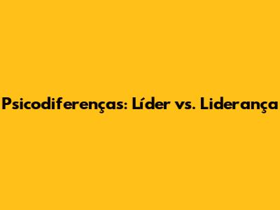 Psicodiferenças: Líder Vs. Liderança