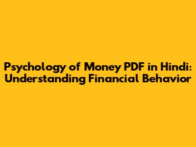 Psychology Of Money PDF In Hindi: Understanding Financial Behavior