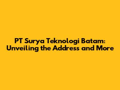 PT Surya Teknologi Batam: Address & More