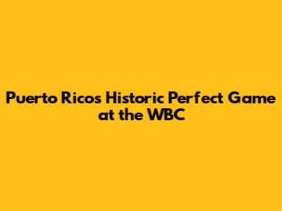 Puerto Rico's Historic Perfect Game At The WBC