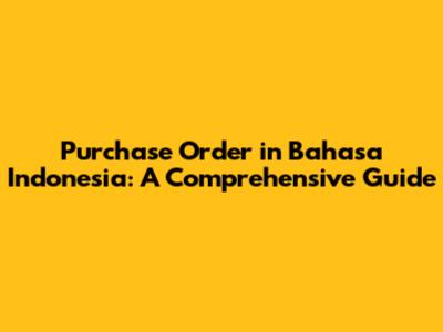 Purchase Order In Bahasa Indonesia: A Comprehensive Guide