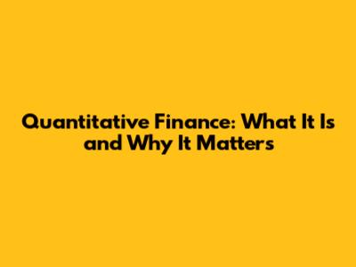 Quantitative Finance: What It Is And Why It Matters
