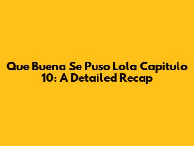 Hey guys! Let's dive deep into Que Buena Se Puso Lola episode 10. This episode was a rollercoaster, and I'm here to break it all down for you. From the sizzling drama to the heart-wrenching moments, we'll cover everything that made this episode unforgettable. So, grab your cafecito and let’s get started!