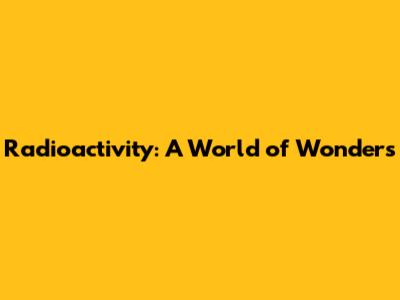 Radioactivity: A World Of Wonders