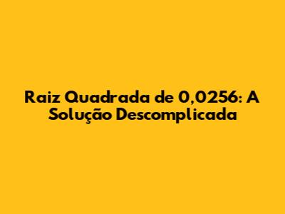 Raiz Quadrada De 0,0256: A Solução Descomplicada