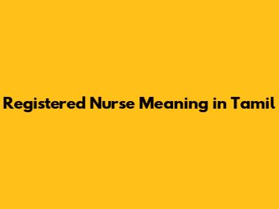 Registered Nurse In Tamil: Meaning And More