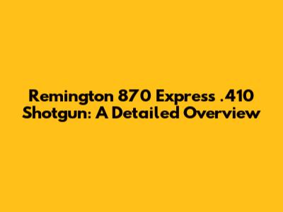 Remington 870 Express .410 Shotgun: A Detailed Overview