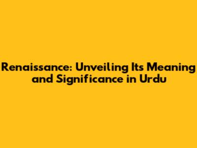 Renaissance: Meaning And Significance In Urdu