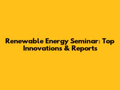 Renewable Energy Seminar: Top Innovations & Reports