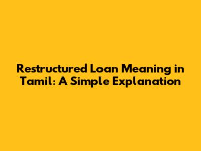 Restructured Loan Meaning In Tamil: A Simple Explanation