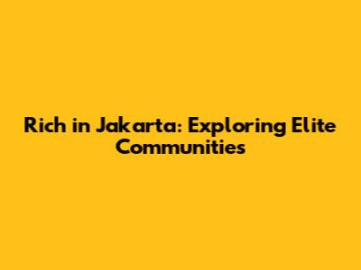 Rich In Jakarta: Exploring Elite Communities