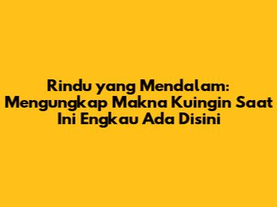 Rindu Yang Mendalam: Mengungkap Makna 'Kuingin Saat Ini Engkau Ada Disini'