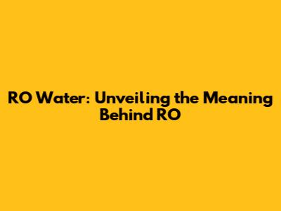 RO Water: Unveiling The Meaning Behind RO