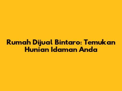 Rumah Dijual Bintaro: Temukan Hunian Idaman Anda