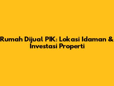 Rumah Dijual PIK: Lokasi Idaman & Investasi Properti
