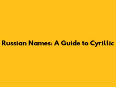 Russian Names: Guide To Cyrillic